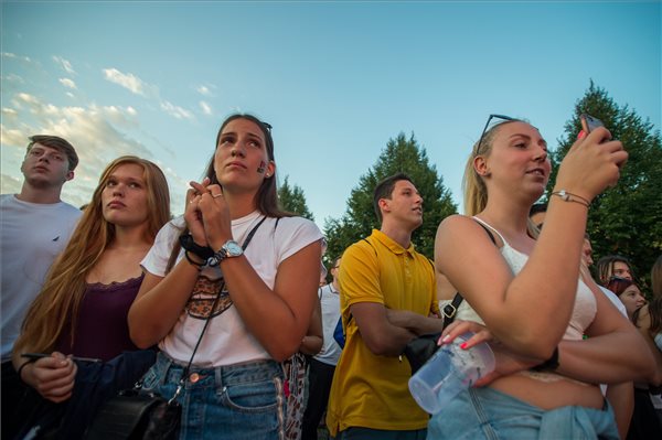 A Pont Ott Partin fiatalok százai beszélgettek, iszogattak az eredményekre várva, amelyeket a szimbolikus gombnyomás után kivetítőről olvashattak le.