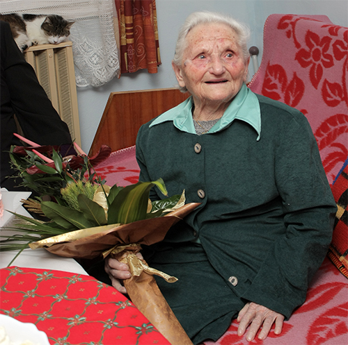 A Hegyi Mihályné utcában lakó Kovács Antalnét köszöntötte 100. születésnapja alkalmából Debrecen önkormányzata 2015. február 8-án.