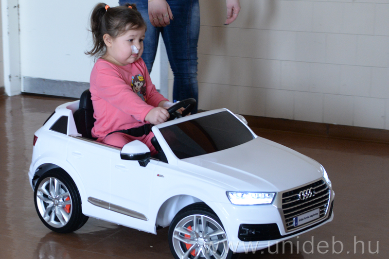 Egy fehér sportautó fogadja a beteg gyerekeket a DE Kenézy Gyula Egyetemi Kórház Fül-Orr-Gége Osztályán. A járműben akár a műtőig is elgurulhatnak.