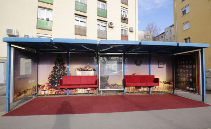 Kandallót, karácsonyfát és plüss fotelt is kapott Pécs egyik legforgalmasabb buszmegállója a Megyeri téren, mely december végéig ünnepi díszbe öltözve várja a várakozókat.