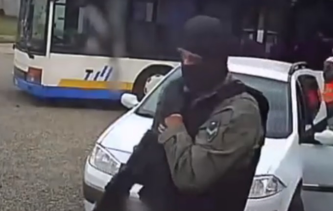 A kamion fedélzeti kamerája rögzítette, ahogy a rablók egy fehér Renault kombival megállítják a teherautót, majd NAV-os egyenruhában, láthatósági mellényt öltve kiszállnak, és körbe veszik a sofőrt. Miután a kamionos félreállt, fegyvert szegeztek rá, megfenyegették, elvették a pénzét, majd magára hagyták.