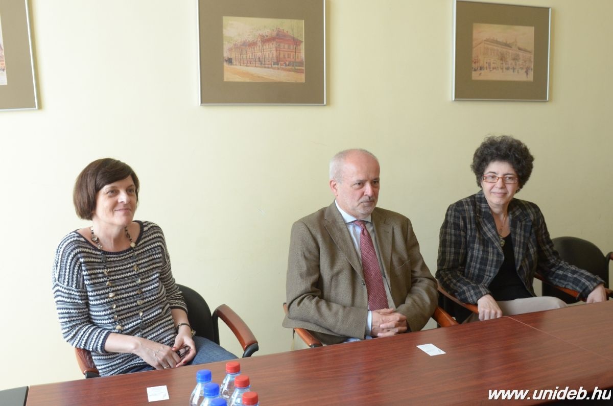 – Ez az első alkalom, hogy Debrecenben járok, és nagyon kedvező benyomásokat szereztem itt az egyetemen is. Maga az épület is csodálatos, és az intézmény összetett képzési rendszere, tudományos tevékenysége is figyelemre méltó, a német nyelvterületet illetően is – vélekedett Michael Müller-Verweyen.