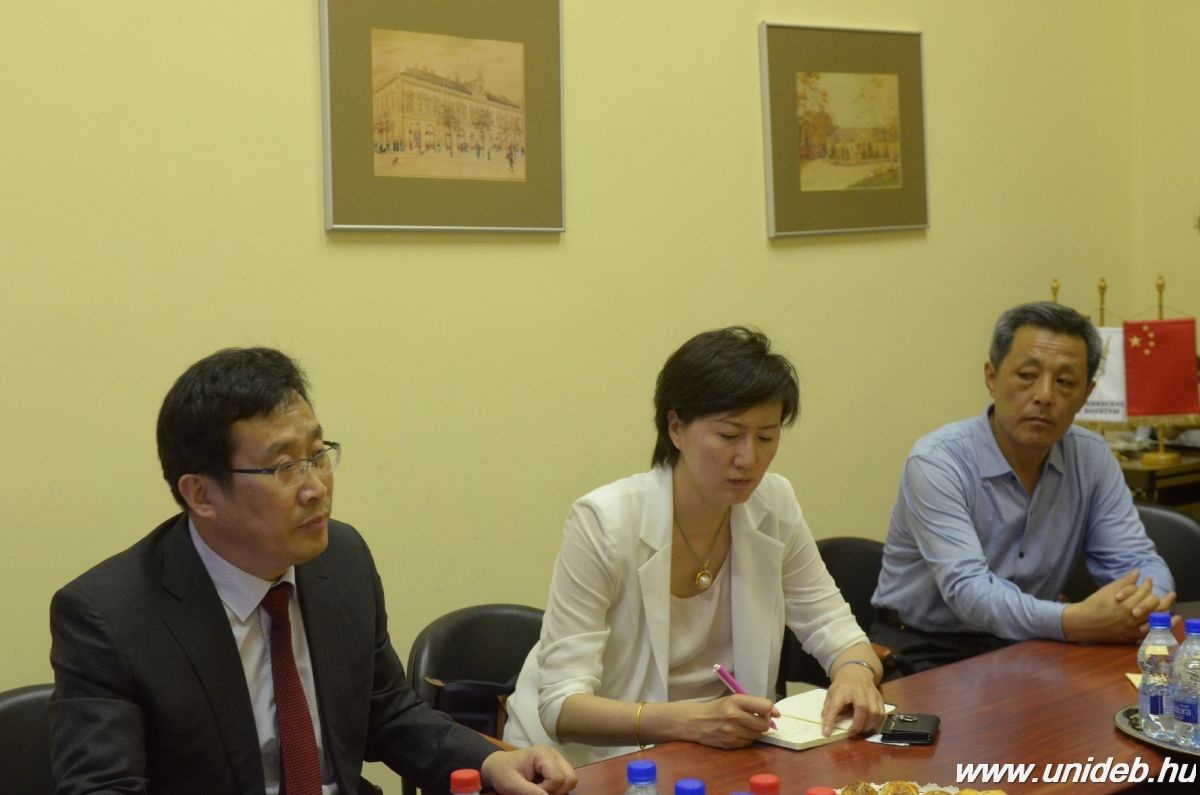 Csernoch László tudományos rektorhelyettes és kari képviselők fogadták a küldöttséget, majd tájékoztatták a kínai vendégeket a Debreceni Egyetem képzési és kutatási portfóliójáról, nemzetközi kapcsolatrendszeréről.