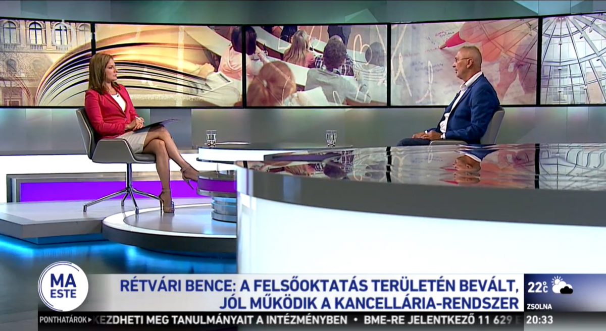 – Még sehol nem volt a kancellári rendszer és a felsőoktatási törvény módosítása, mi nagyjából magunktól találtuk ki a kancellári rendszert mintegy 90 százalékban, pontosan azért, hogy az akkoriban mutatkozó gazdálkodási deficitet kicsit kezelni tudjuk – fejtette ki a rektor a M1 televíziós csatorna július 26-i Ma Este című műsorában.