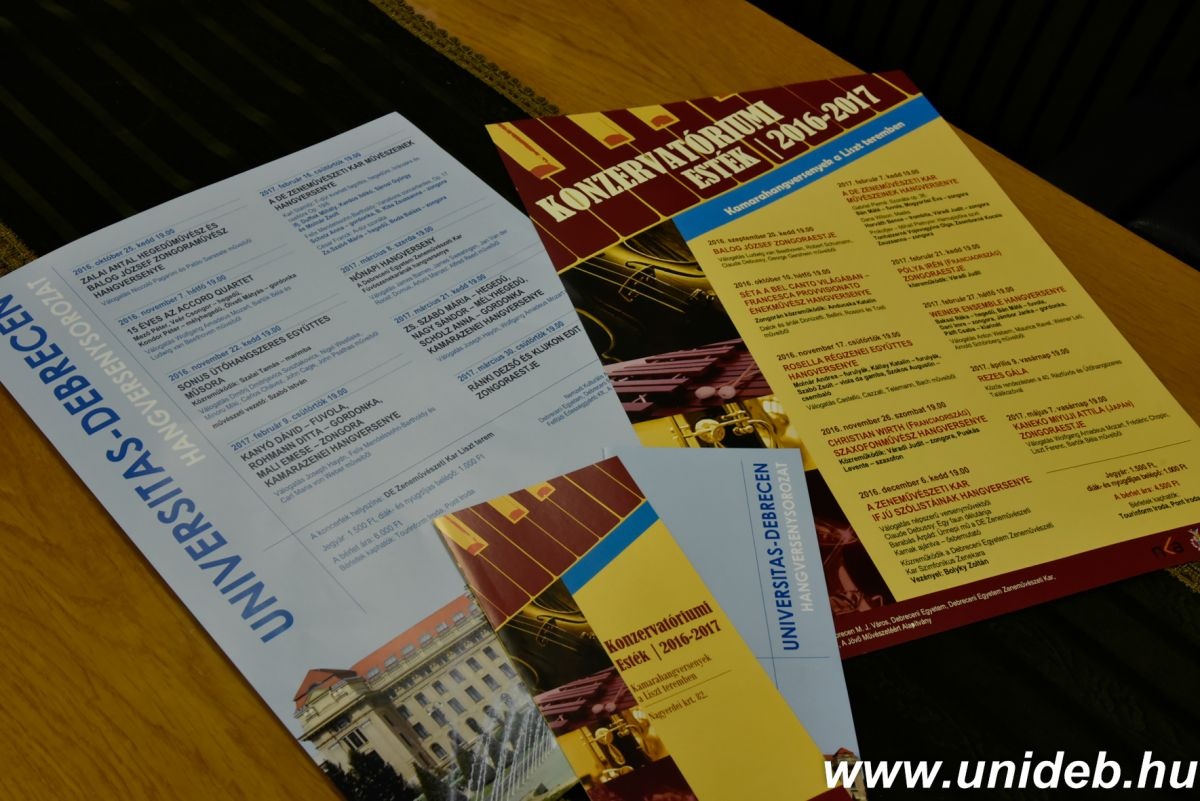 A programsorozat művészeti menedzsere arról is beszámolt, hogy a kar ebben a tanévben több rangos hazai és külföldi felkérésnek is eleget tesz: a szimfonikus zenekar, a Canticum Novum Kamarakórus és a Magánének Tanszék hallgatói Nagyváradon (október 4.) és Nagykárolyban (október 9.) mutatják be Donizetti: Szerelmi bájital című operáját. Decemberben a MÜPA üvegtermében adnak keresztmetszetet a hallgatók a kar képzési kínálatát bemutatva, év végén pedig – december 6-án – a Konzervatóriumi esték keretében ünnepi koncerttel emlékeznek meg az oktatók és hallgatók közösen a debreceni zenetanár-képzés 50 éves évfordulójáról.