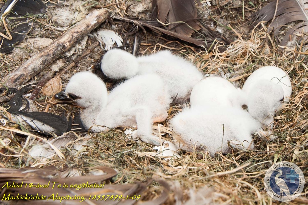 Kikeltek az első gólyafiókák nagyröpdében! Az egyik, öt tojásos fészekaljból három kis gólya bújt elő eddig, egy tojás felrepedt és egyre még várni kell pár napot. A hétvégére várhatóan a gólyafiak többsége előbújik tojásából, így Pünkösdre már akár negyven kis gólya is lehet a madármentő helyen. A kórházban idén tíz lakott gólyafészek van, ebből négy a földön, ami igazi kuriózum e madárnál, a többi pedig az épületeken, vagy a nagy volierben kialakított gólyafészkelő helyen.