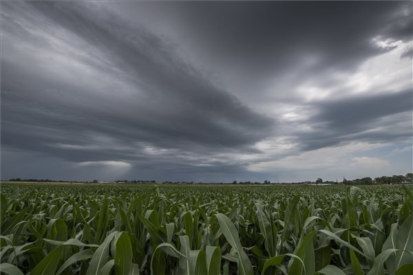 Zivatarlánc felhőzete Debrecen határából fotózva 2017. június 29-én. Az Országos Meteorológiai Szolgálat heves zivatarokra figyelmeztet Bács-Kiskun, Békés, Borsod-Abaúj-Zemplén, Csongrád, Hajdú-Bihar, Heves, Jász-Nagykun-Szolnok, Nógrád és Szabolcs-Szatmár-Bereg megyében. Károkozó szélrohamokkal kísért heves zivatarok főként a keleti, északkeleti országrészben fordulhatnak elő. MTI Fotó: Czeglédi Zsolt