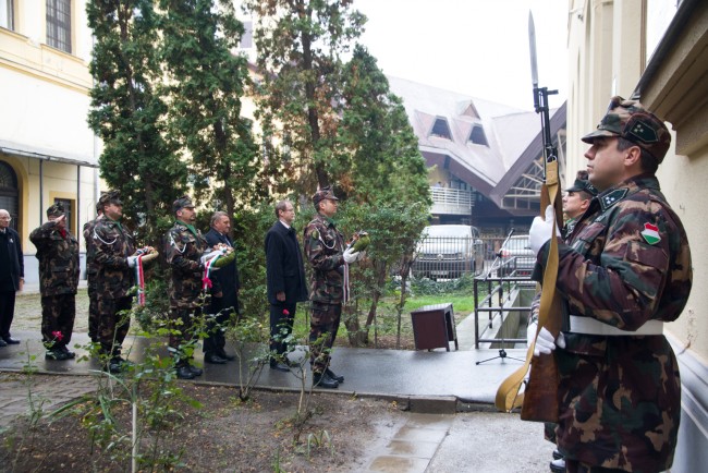 A megemlékezés-sorozat a debreceni származású Iván Kovács László, a budapesti Corvin köziek első parancsnoka emléktáblájának megkoszorúzása volt a Debreceni Szakképzési Centrum Bethlen Gábor Közgazdasági Szakgimnáziuma épületének falán.