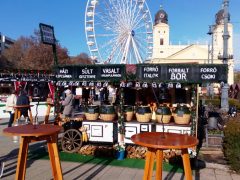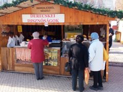 Sokféle portéka várja a vásárlókat és az érdeklődőket a debreceni adventi vásáron. A Kossuth téren óriáskerék is várja a nagyérdeműt.