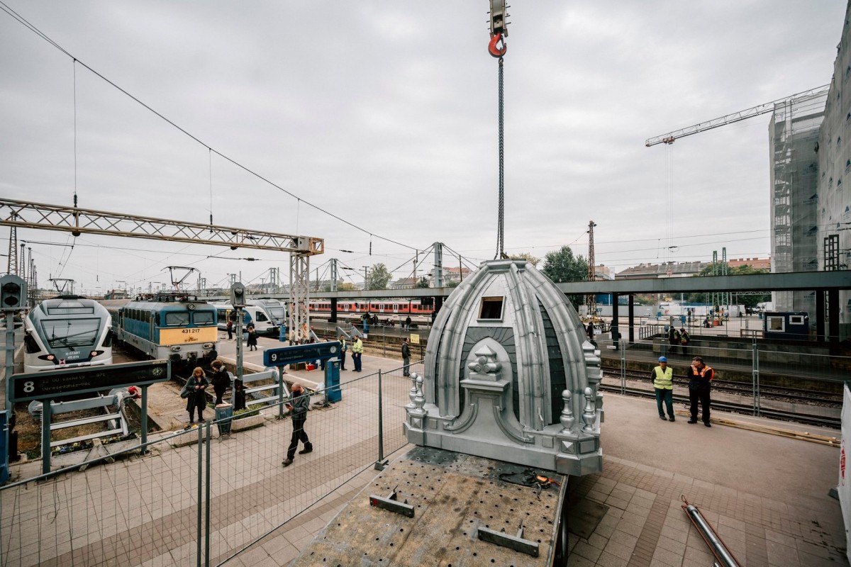 A Nyugati pályaudvar teljes, mintegy 8200 négyzetméteres tetőszerkezetének felújításának részeként, óriási előrelépés, hogy helyére emelték a 19 méter magas párkány fölé magasodó, a csarnok bal oldali tornyát.
