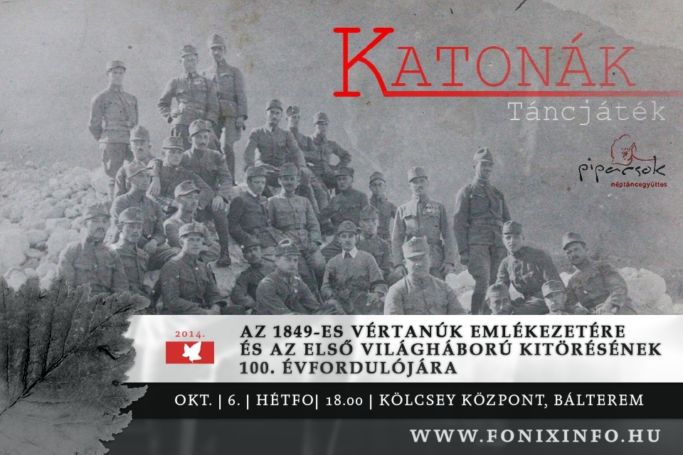 A székelykeresztúri Pipacsok Táncegyüttes Katonák című táncjátéka egyetemes módon emlékeztet minket az 1848-49-es szabadságharc áldozatot vállaló katonáira, a 100 évvel ezelőtt kezdődött I. világháború katonáira, s magának a katonaságnak a drámájára.