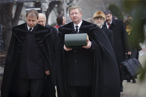 Fekete Károly, a Tiszántúli Református Egyházkerület püspöke (k) viszi második állomására a reformáció 500. évfordulója alkalmából az Alföldi Nyomdában egy példányban elkészült Bibliát a debreceni Református Nagytemplom előtt 2017. január 1-jén. Ezen a napon elindult A Szentírás vándorútja a Tiszántúlon nevű kezdeményezés, amelynek keretében az év végéig eljut a Biblia az egyházkerület összesen 414 gyülekezetébe Záhonytól Szegedig. MTI Fotó: Czeglédi Zsolt