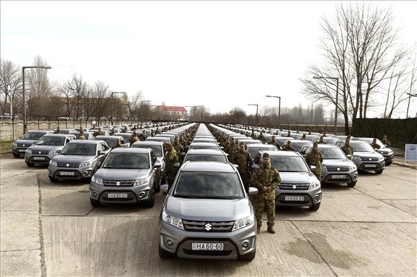 A Zrínyi 2026 honvédelmi és haderőfejlesztési program keretében beszerzett 250 új Suzuki Vitara típusú gépjárművet hétfőn mutatták be Budapesten, a Magyar Honvédség Anyagellátó Raktárbázisán.