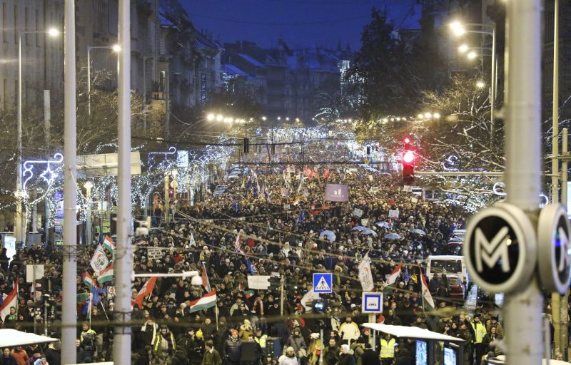 Friss: a tüntetők elindultak a Kossuth térről a Margit híd irányába