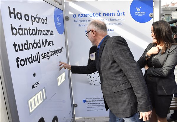 A sajtótájékoztatón a budapesti Móricz Zsigmond körtér egyik villamosmegállójában bemutattak egy interaktív köztéri plakátot, amely azzal a kérdéssel igyekszik elgondolkoztatni a járókelőket, hogy “Ha a párod bántana, tudnád, kihez fordulj segítségért?”.