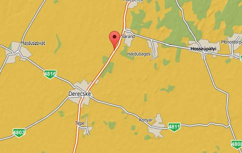 A rendelkezésre álló adatok szerint 2014. november 6-án 15 óra körüli időben egy kamion és egy mezőgazdasági munkagép közlekedett Sáránd felől Derecske irányába, amikor eddig tisztázatlan körülmények között összeütköztek. A balesetben személyi sérülés nem történt.