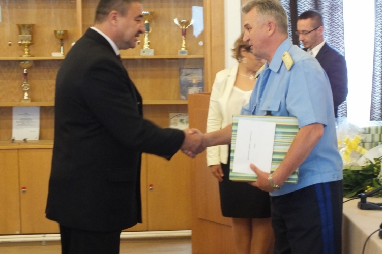 Dr. Gyurosovics József r. dandártábornok, Hajdú-Bihar megye rendőrfőkapitánya emléktárgyakat adott át több kollégájának.