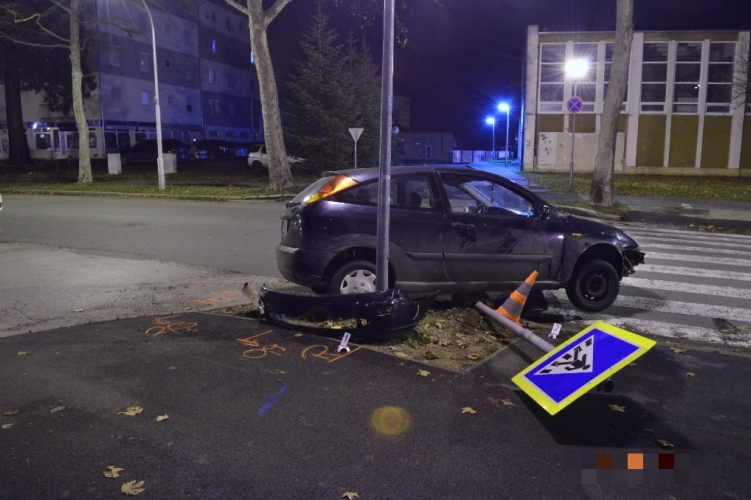 Amikor a Platán sori kereszteződéshez ért, jobbra kanyarodása során felhajtott az úttest mellett lévő füves területre, és egy jelzőtáblának ütközött, melyet ki is döntött.